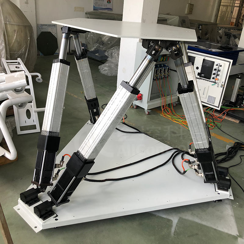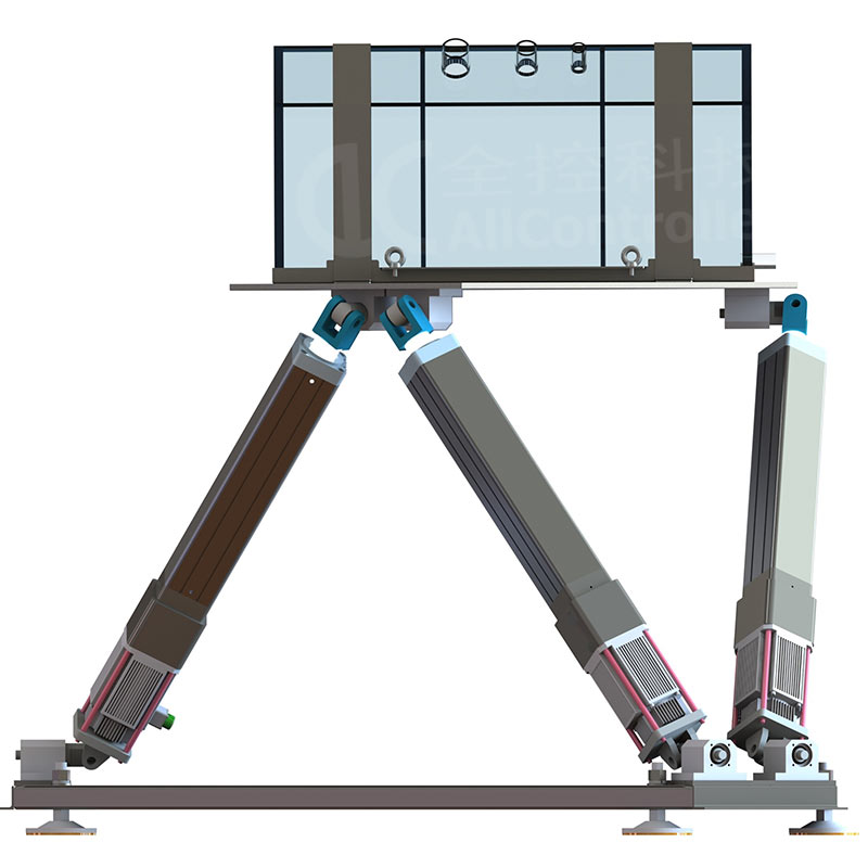六自由度運(yùn)動平臺控制系統(tǒng)通過無線方式(WIFI或者5G傳輸)接收真實(shí)電鏟的運(yùn)動數(shù)據(jù)及運(yùn)行數(shù)據(jù),然后將接收到的數(shù)據(jù)進(jìn)行集中分析處理,系統(tǒng)根據(jù)處理結(jié)果來控制運(yùn)動平臺做出匹配的動作,可真實(shí)的模擬電鏟各個工作模式下的運(yùn)動反饋,例如路面顛簸感、鏟斗碰撞物體的碰撞感、上下坡的傾斜感等。平臺執(zhí)行器與控制器分開布置方便檢修維護(hù)。
